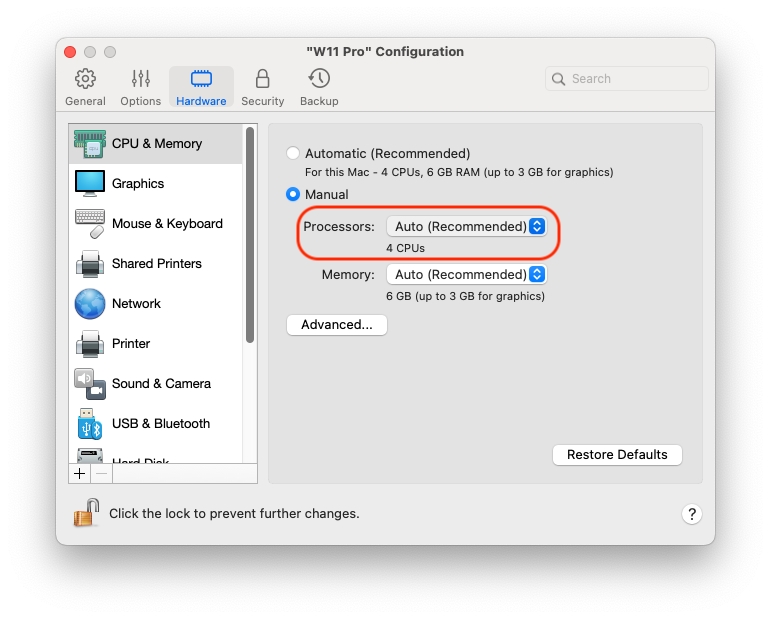 但是,如果您经常同时运行多个虚拟机,自动内核分配可能会导致资源冲突。我们建议手动配置分配给每个虚拟机的 CPU 数量。如需了解手动内核分配限制,请参阅此页面。