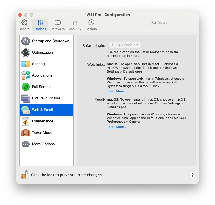 在 Web 和电子邮件窗格中,您可以为 Safari 启用插件,以在 Microsoft Edge 中打开网页。还可以了解如何将在 Windows 中打开的链接和电子邮件设置为始终在 macOS Web 浏览器或电子邮件应用中打开,反之亦然。