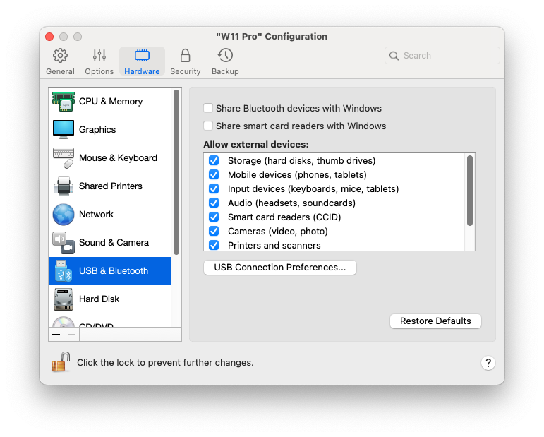 允许外部设备(仅在 Parallels Desktop for Mac Business Edition 中有提供)