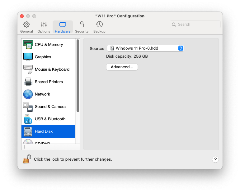 在硬盘窗格中,您可以查看和配置与虚拟机硬盘相关的设置。