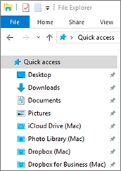 登录到 Windows 并打开计算机。用于 iCloud、Dropbox 或 Google Drive 的文件夹在收藏夹部分(或者,如果是 Windows 10,则是快速访问部分。您可以上传文件到云存储也可以从云存储下载文件。