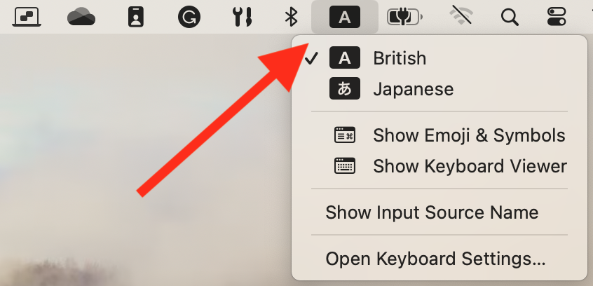从 macOS 菜单栏的输入菜单选定您需要的语言。