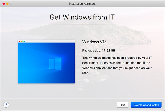 为了使 Parallels Desktop 正常运行,您需要具有某些操作系统(大多数情况下为 Windows)和应用程序的虚拟机。如果您使用的是 Parallels Desktop for Mac Business/Enterprise Edition,则在首次启动 Parallels Desktop 时可能会看到以下或类似屏幕。