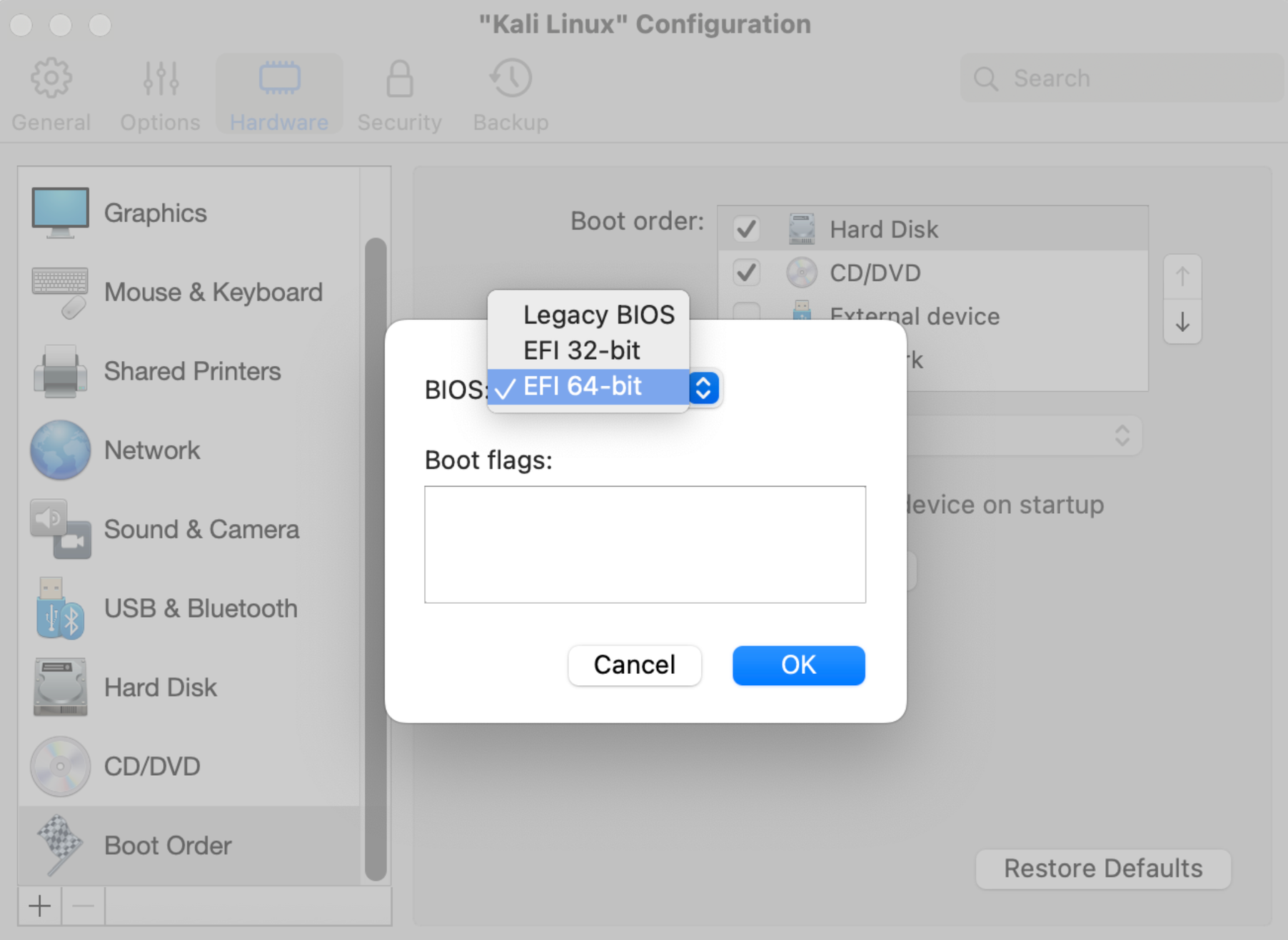 在英特尔Mac上创建的大多数Linux虚拟机都有一个虚拟引导加载程序,用于模拟传统BIOS,但该程序与我们的模拟功能不兼容。如果您想转移一台Linux x86_64机器,则必须先在英特尔Mac上创建一台新机器,具体步骤如下: