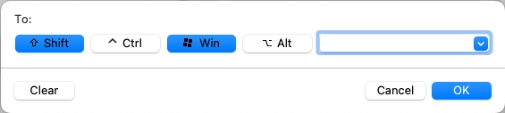 要添加新组合键,请单击添加按钮 Mac_Add button。