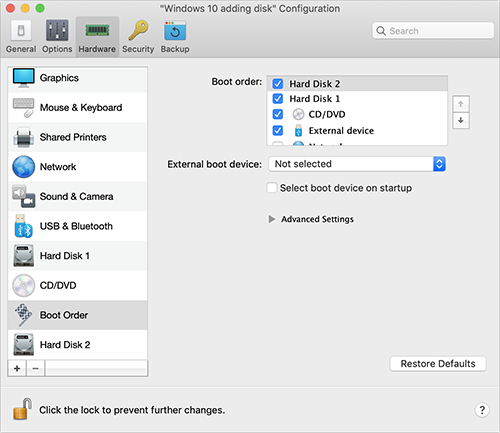 如果要从此磁盘启动虚拟机,请点击启动顺序并使用向上箭头将此磁盘移动到启动顺序列表的最开头。