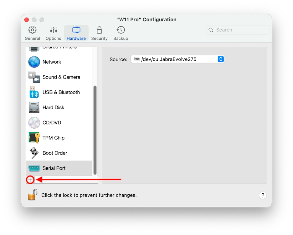 要打开这些设置,请选择操作 > 配置 > 硬件,然后单击串行端口。如果串行端口不存在,请点击 + 添加端口,然后按照下面的说明进行配置。