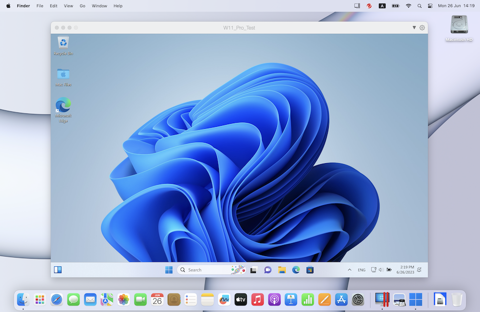 Parallels Desktop 19 既可以安装在搭载 Apple Silicon 的 Mac 计算机上,也可以安装在搭载 Intel 芯片的 Mac 计算机上。