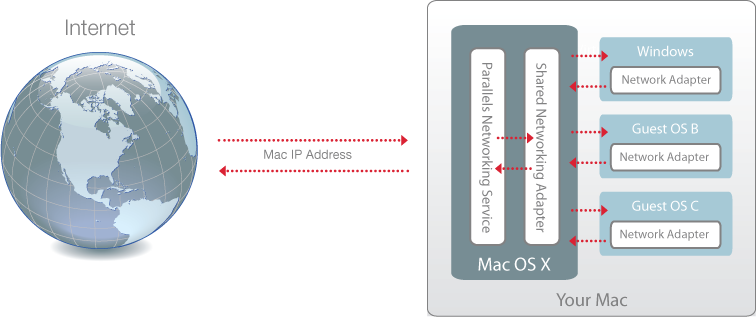 Parallels Desktop 提供三类用于 Windows 的网络连接方式:
