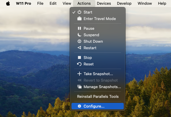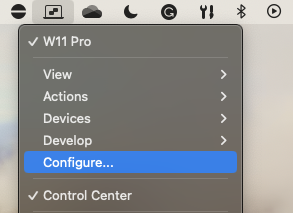 单击菜单栏中的 Parallels Desktop 图标,然后选择配置。
